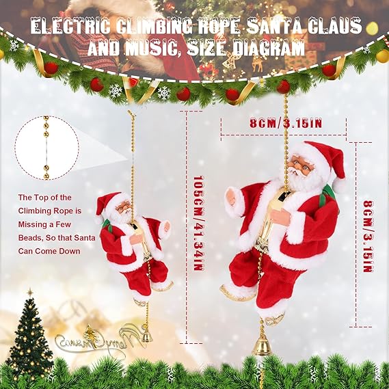 Vive la magia de la Navidad como nunca antes con este encantador Papá Noel Escalador Musical, un adorno lleno de alegría, color y movimiento que cautiva a todos desde el primer instante. 🌟